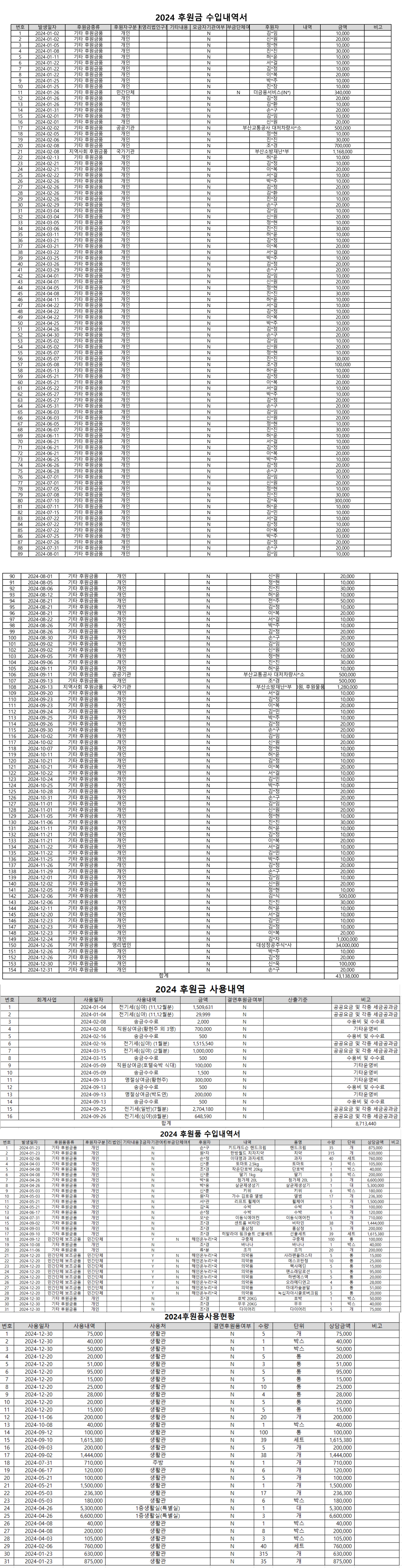 2024년 후원금(품)수입 및 사용 결과보고