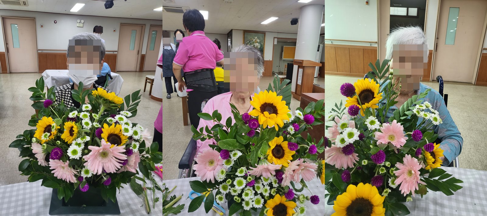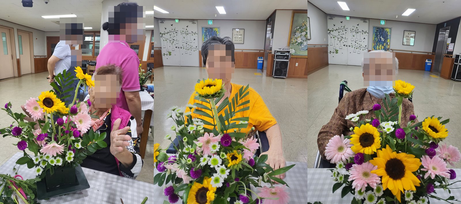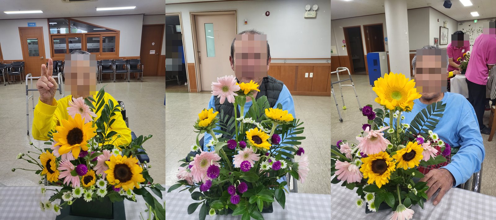 화려하고 예쁜 꽃을 보니 즐거워지신 어르신들께서도 한 분 씩 번갈아가시며