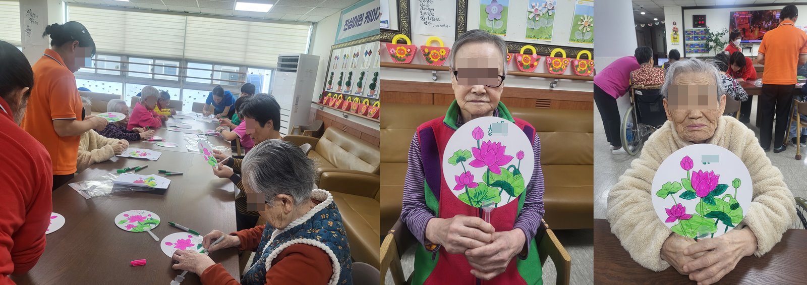 어르신들과 부채연꽃그리기 프로그램을 하였습니다.
