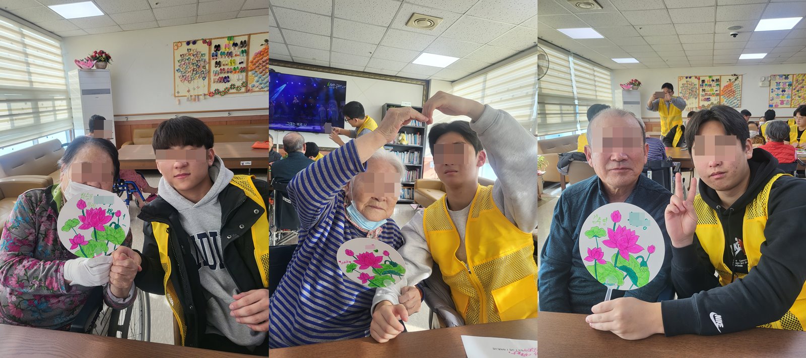 어르신들이 손자 같다며 행복한 미소를 보이시고 웃음꽃이 피며 즐거워 하시네요^^