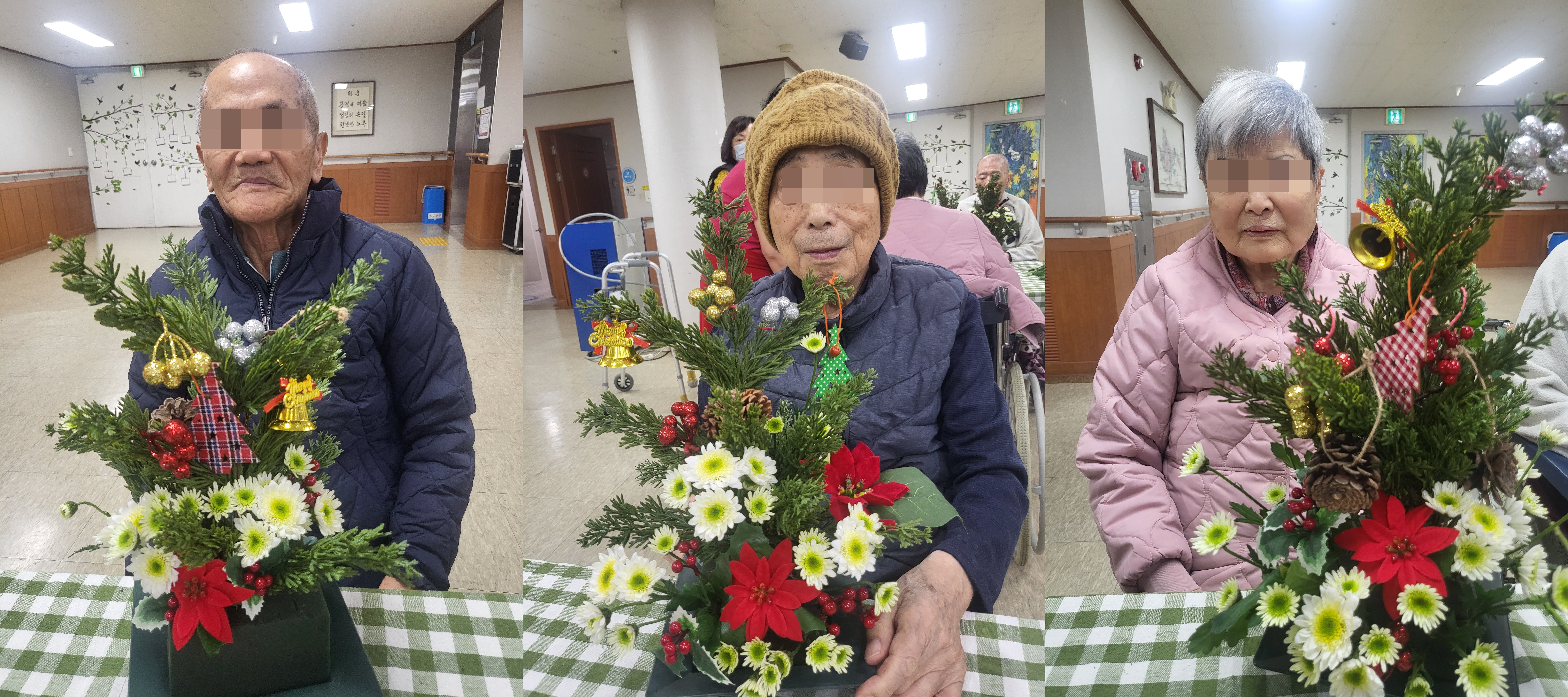 소나무에 크리스마스장식 등으로 미니 트리 꽃꽂이를 해보셨답니다.