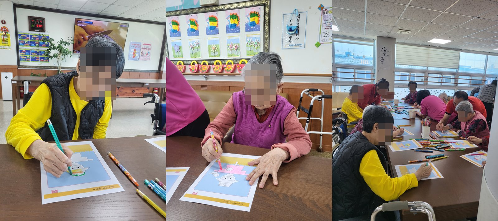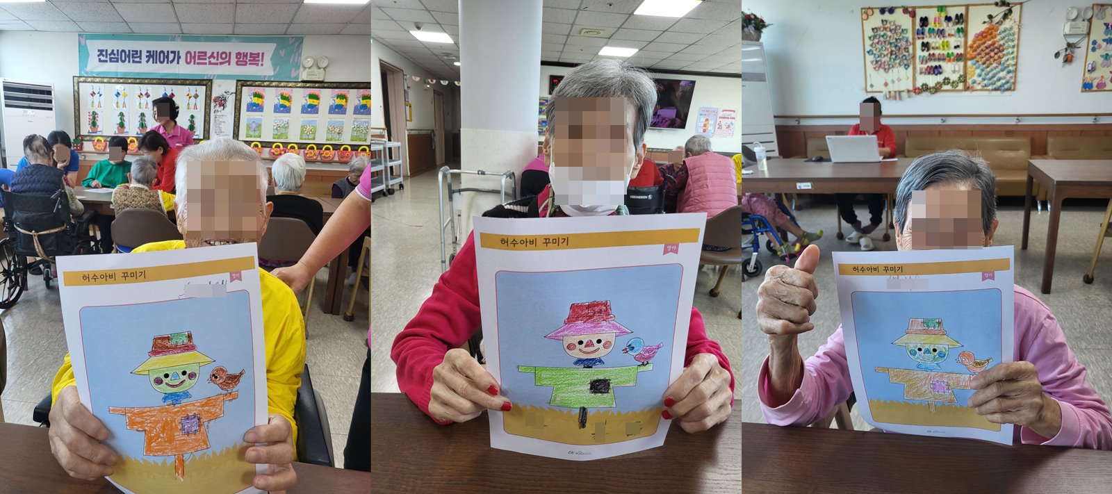 어르신들께서 각자 좋아하시는 색으로 자유롭게 허수아비를 꾸며보셨답니다~♥