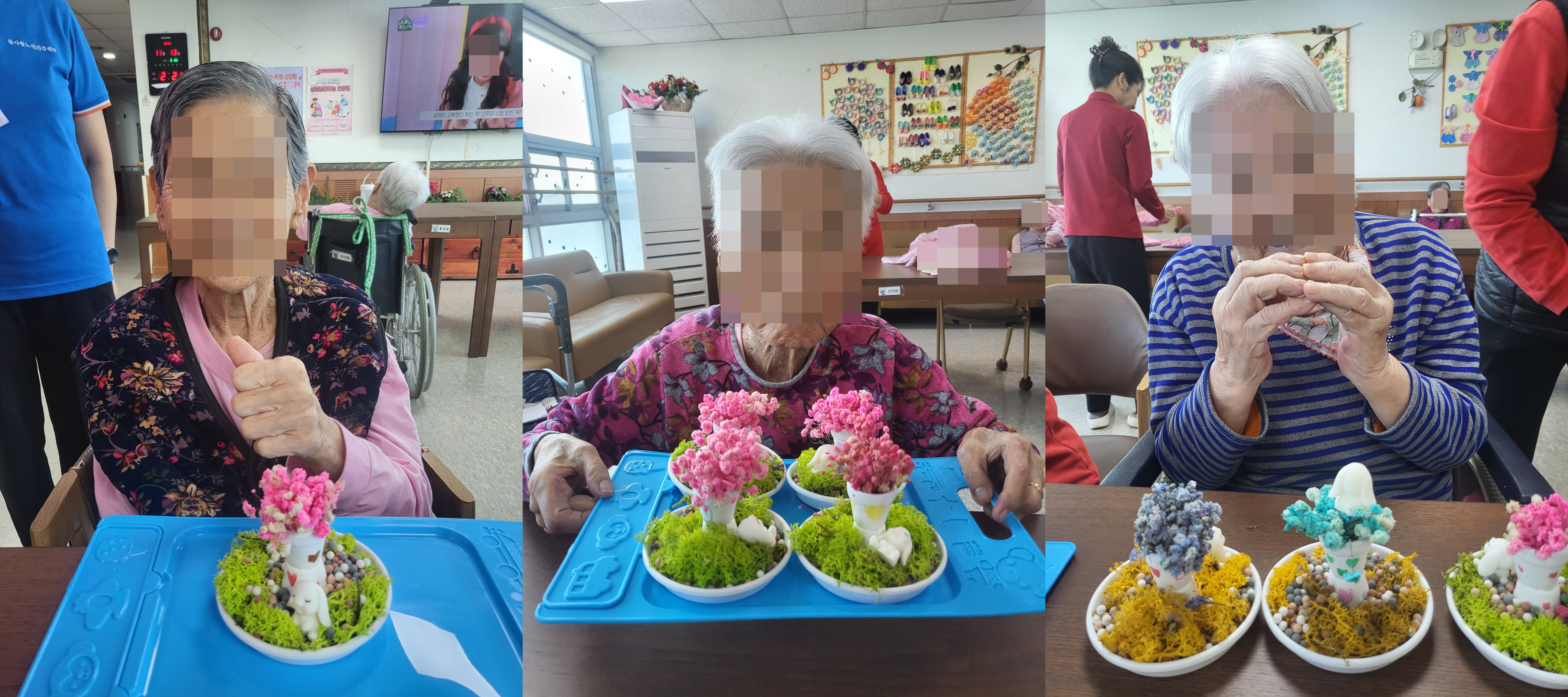 어르신들과 스칸디아모스토분정원만들기 함께 도움을 주며 프로그램을 하였습니다.