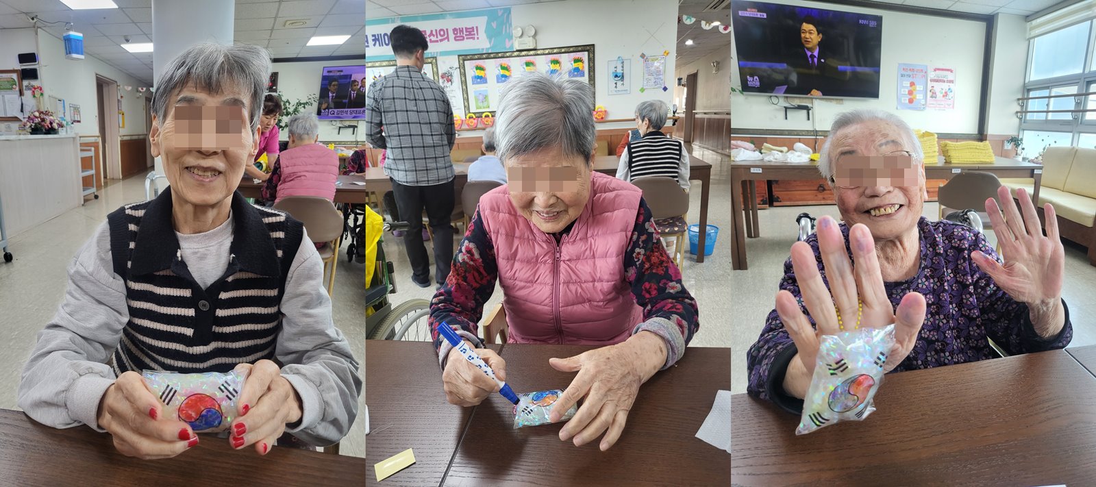 투명태극기를 스티커에 사인펜으로 색칠하여