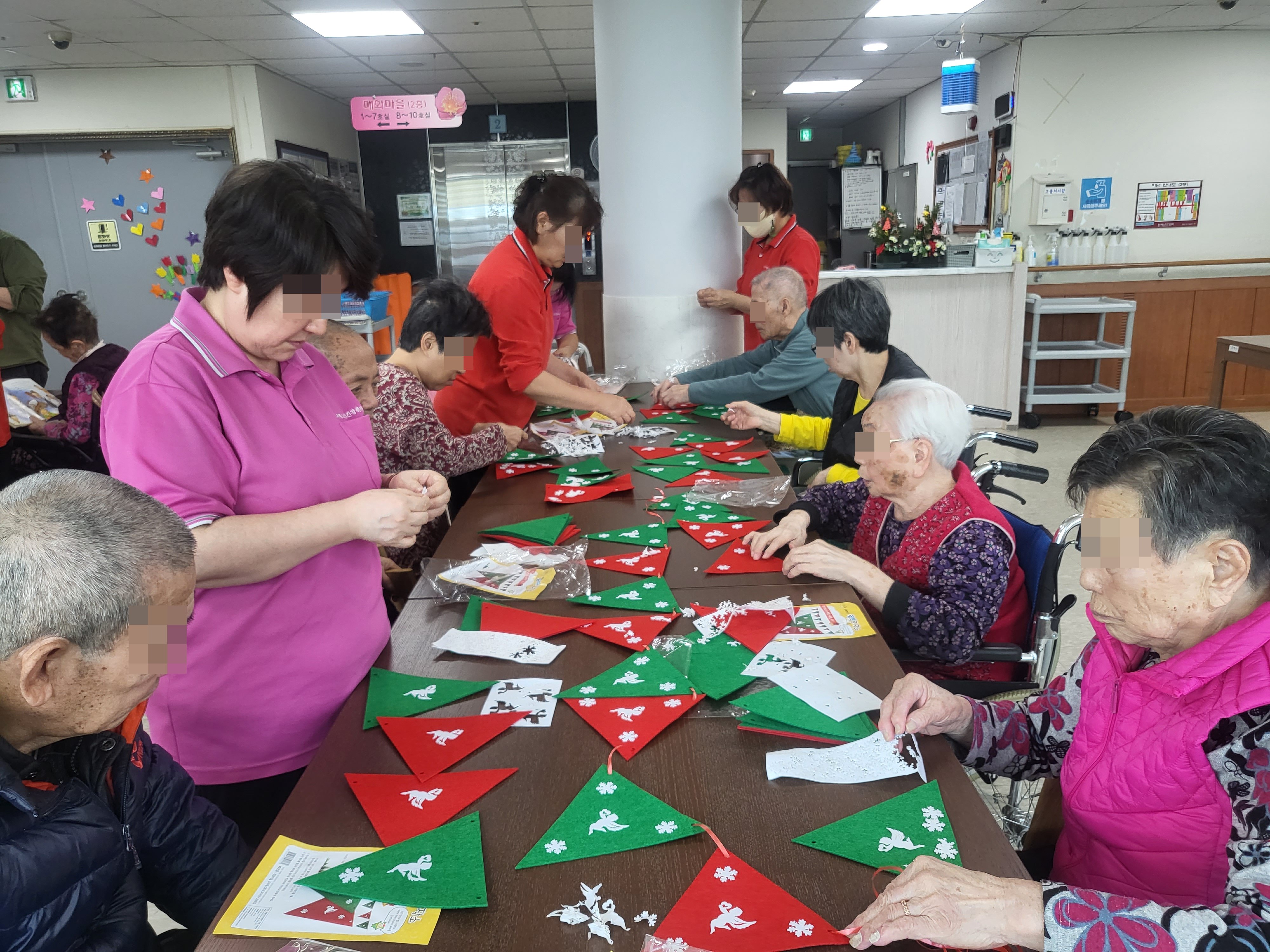 어르신들과 함께 송년 분위기를 느낄 수 있는 X마스 가랜드를 만들어보았습니다~^^