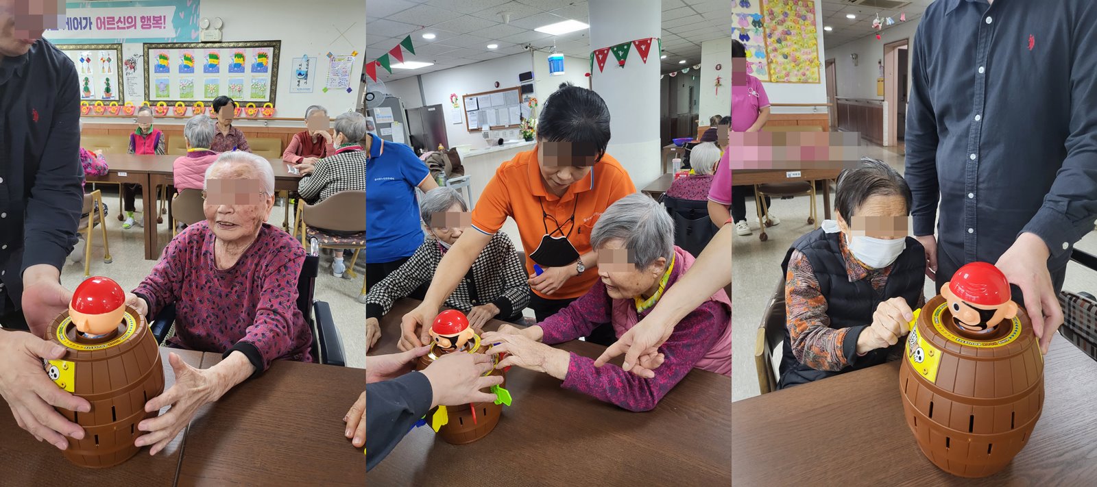 어르신께서 선물을 가져가도록 게임을 해보았습니다.