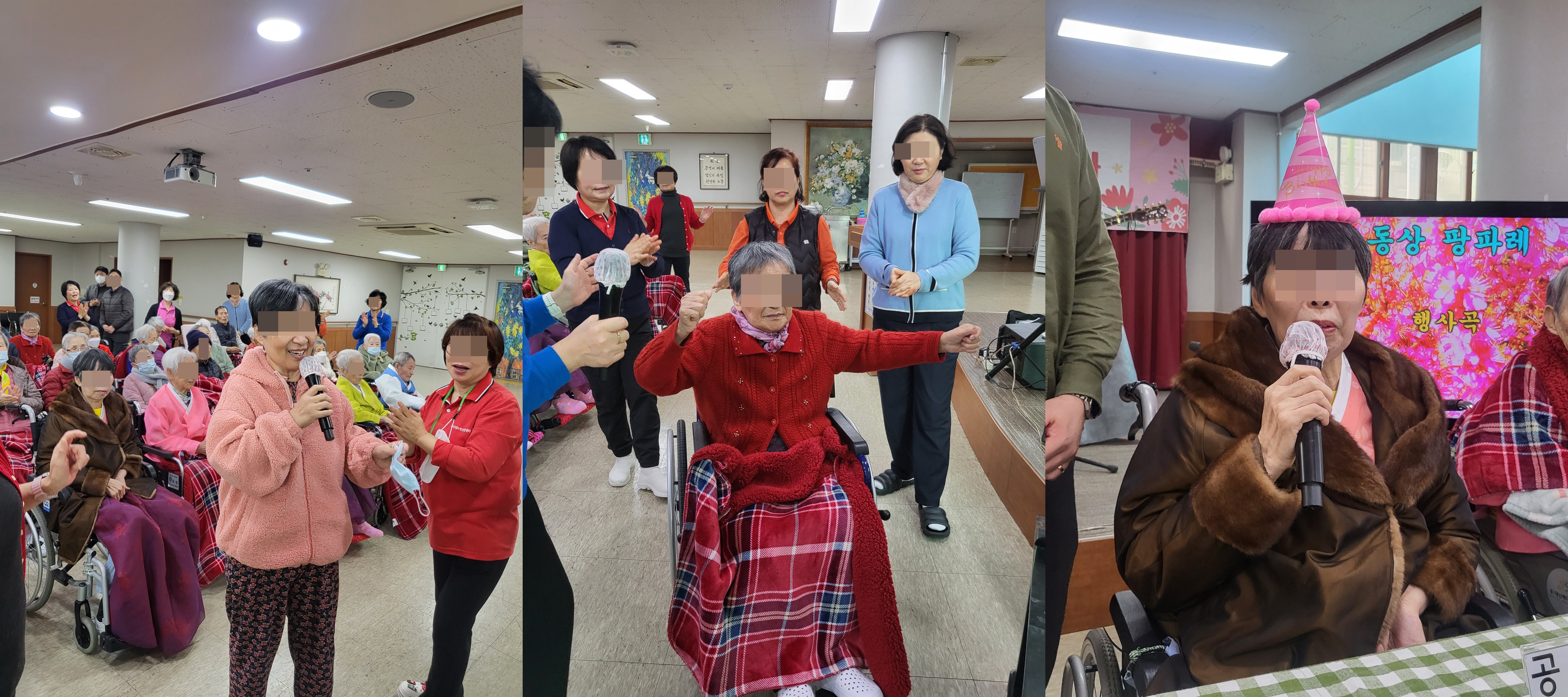 어르신들께서 원하는 신청곡으로 노래를 흥겹게 부르며 박수를 많이 보내주셨습니다.
