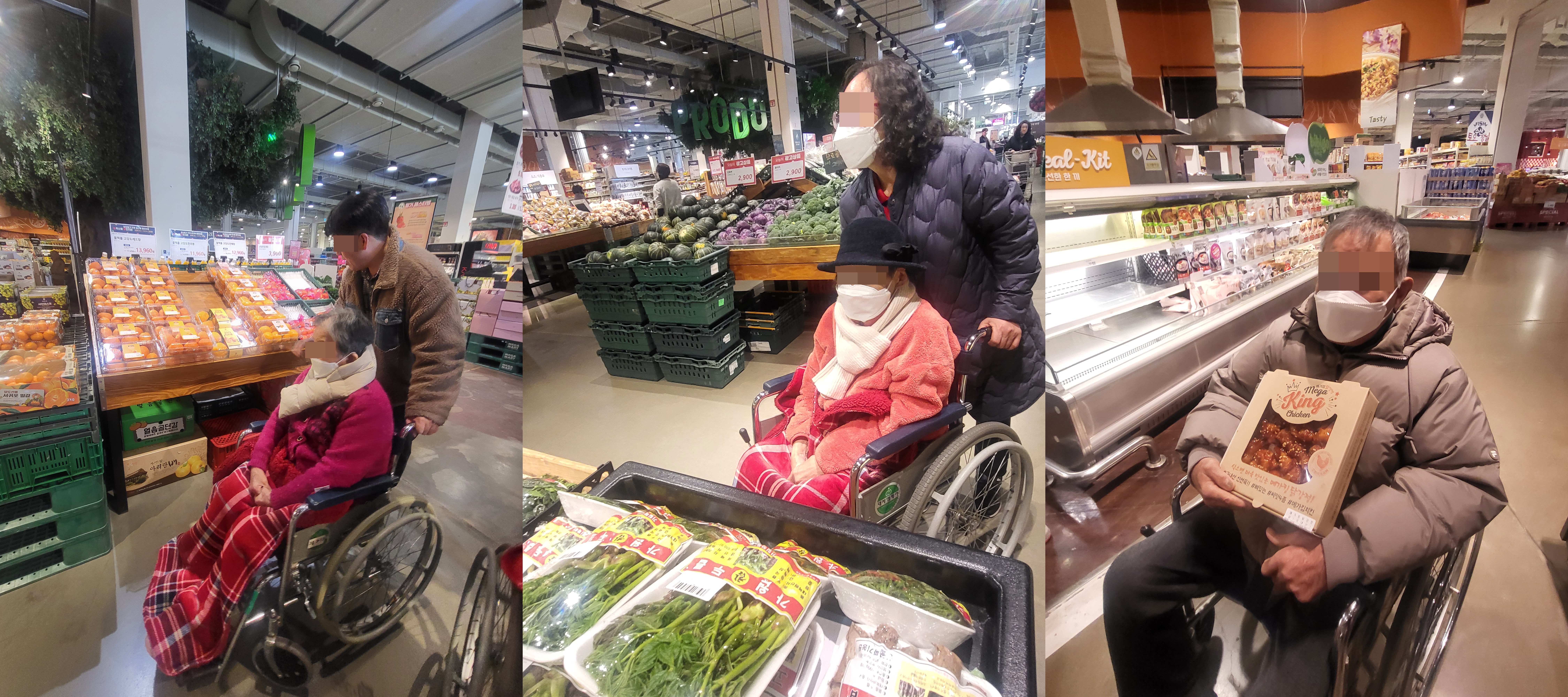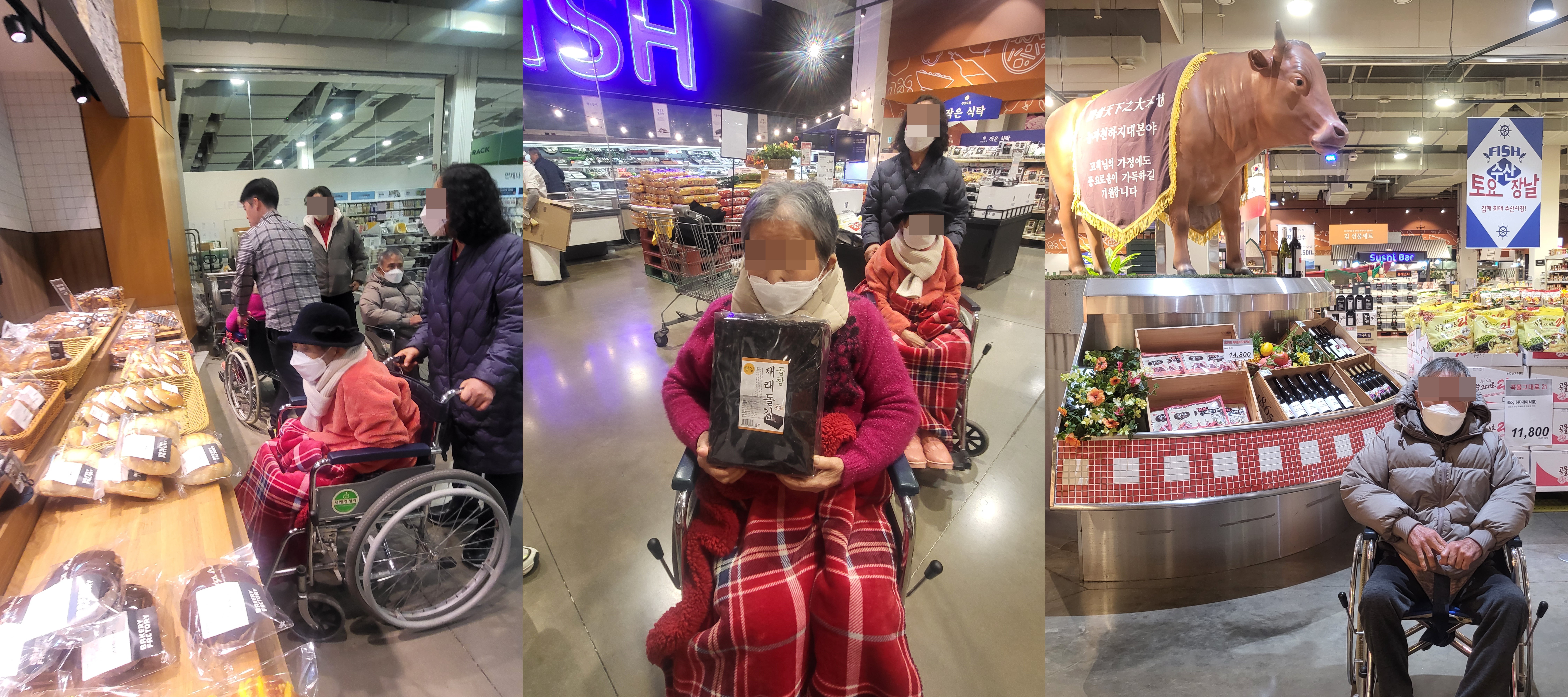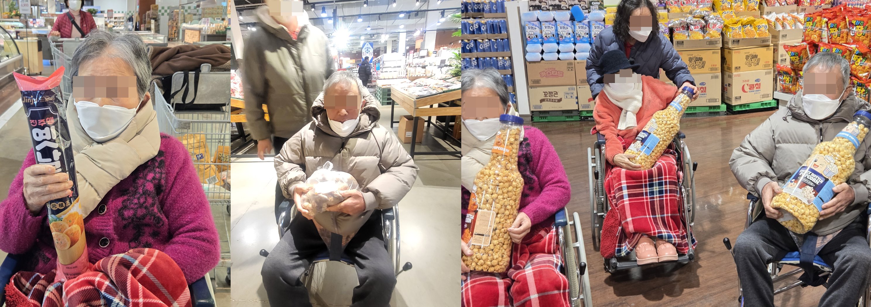 어르신들과 함께 간식도 구경하시고 마트에서 시식도 해보시며