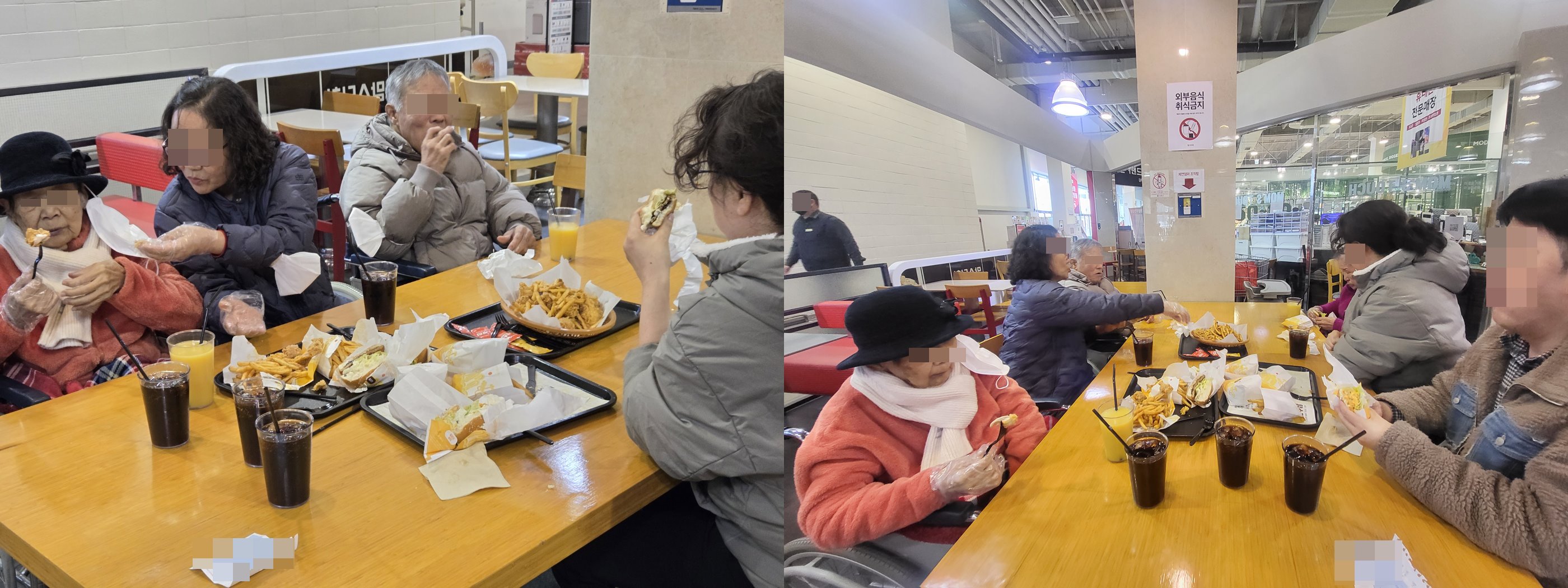 시설 근교에 있는 대형마트와 마트안의 버거집으로 어르신들을 모셨습니다.
