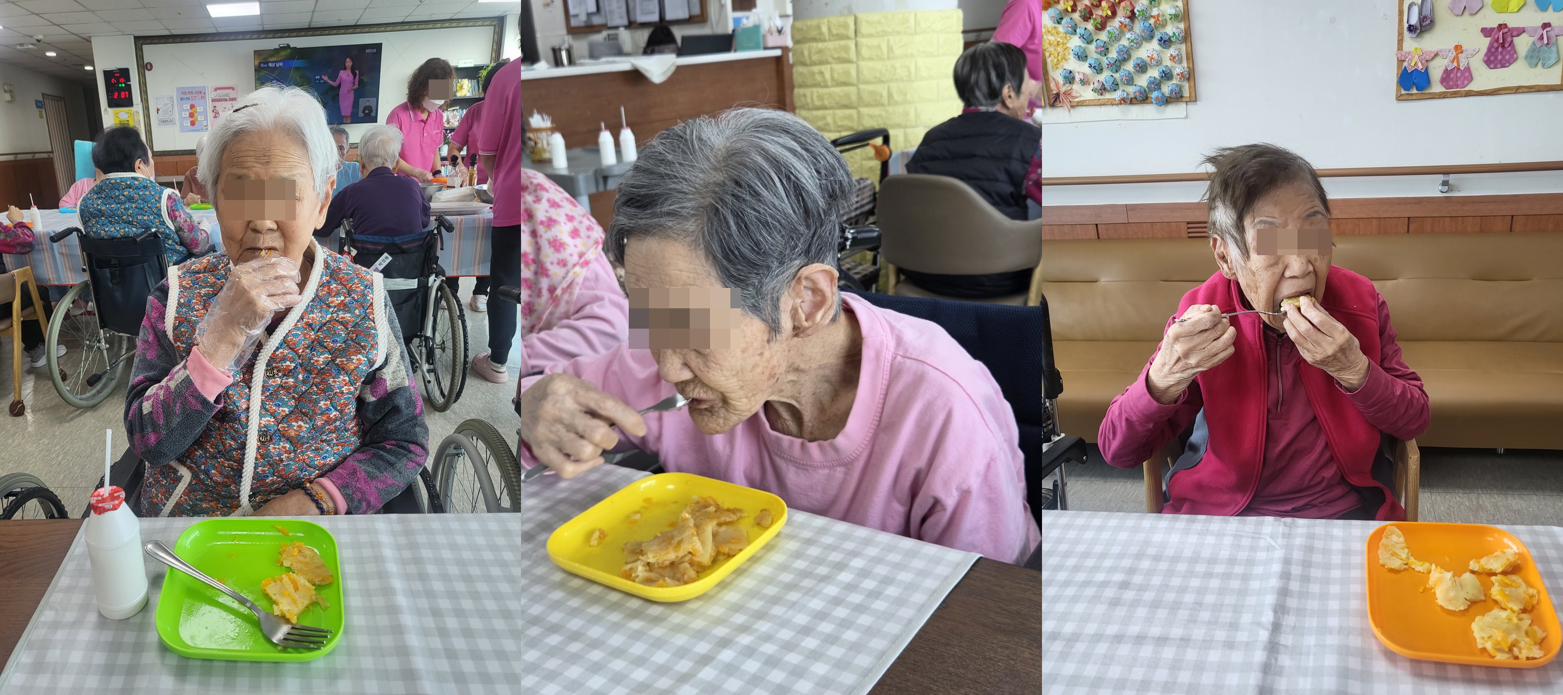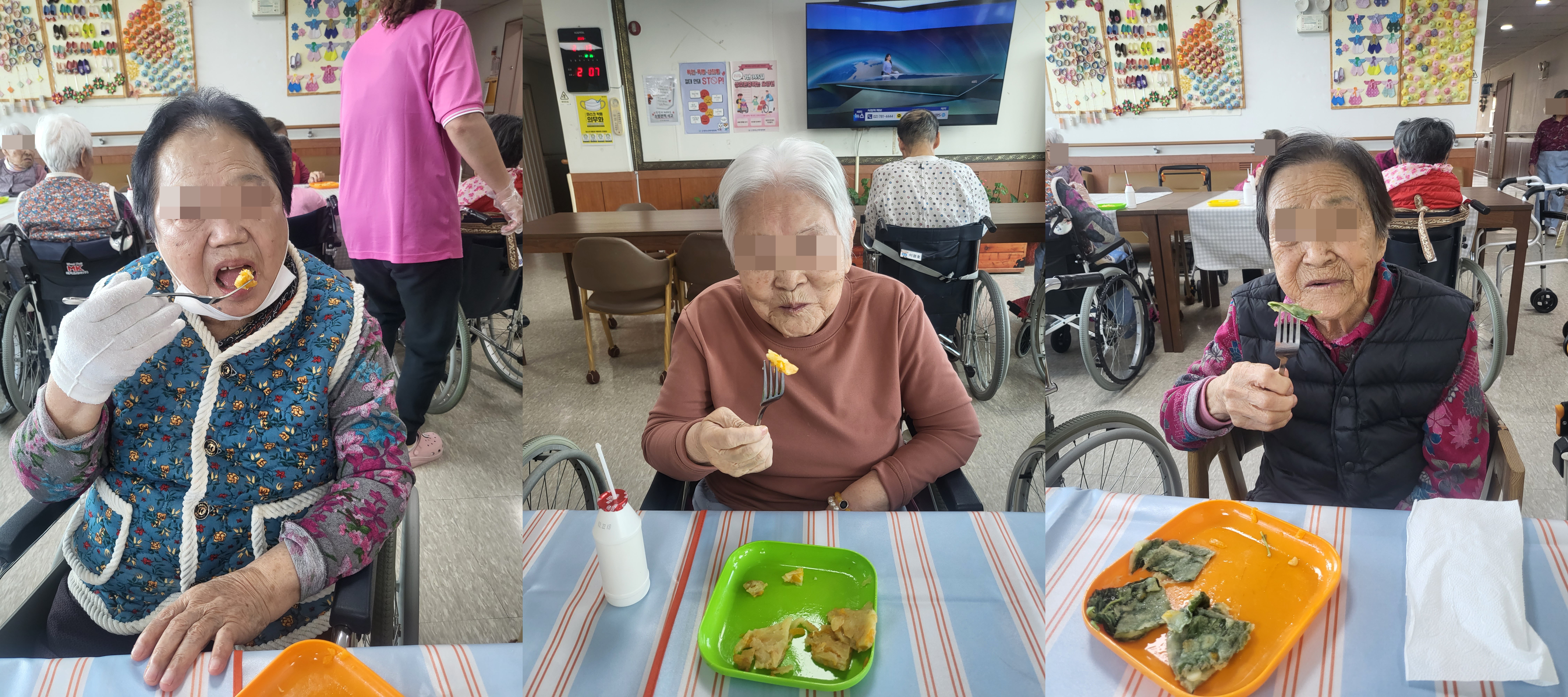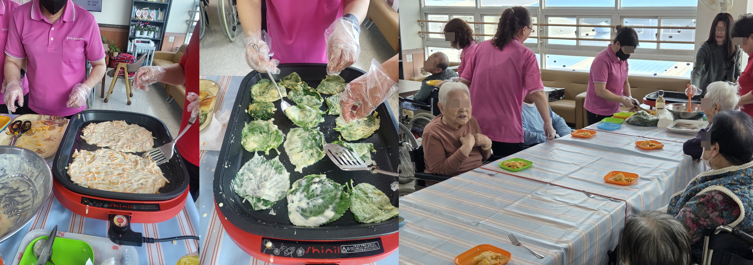 어르신께서 좋아하시는 호박전과 깻잎전 음료와 함께 몇번을 맛있게 더 드시며