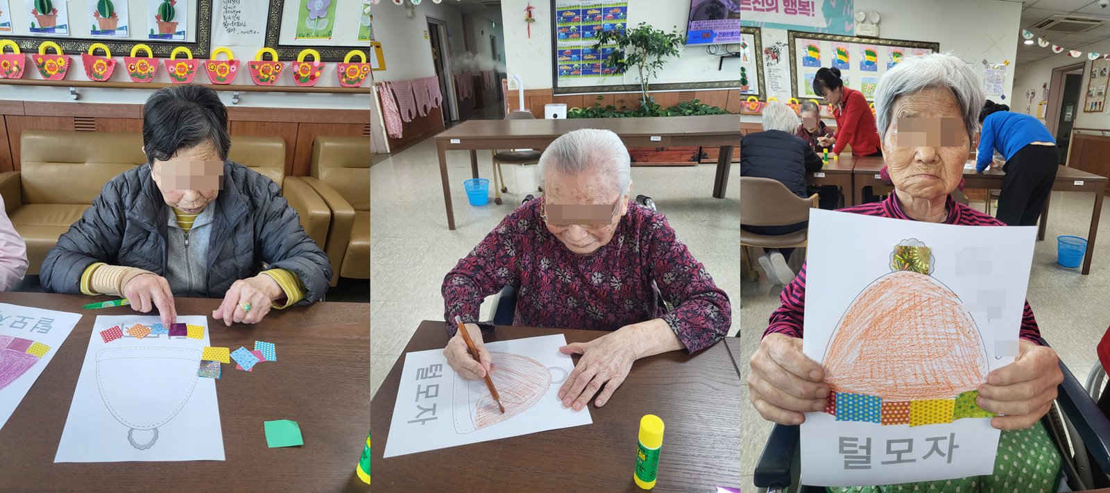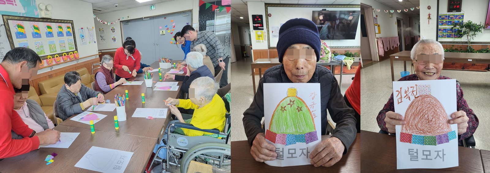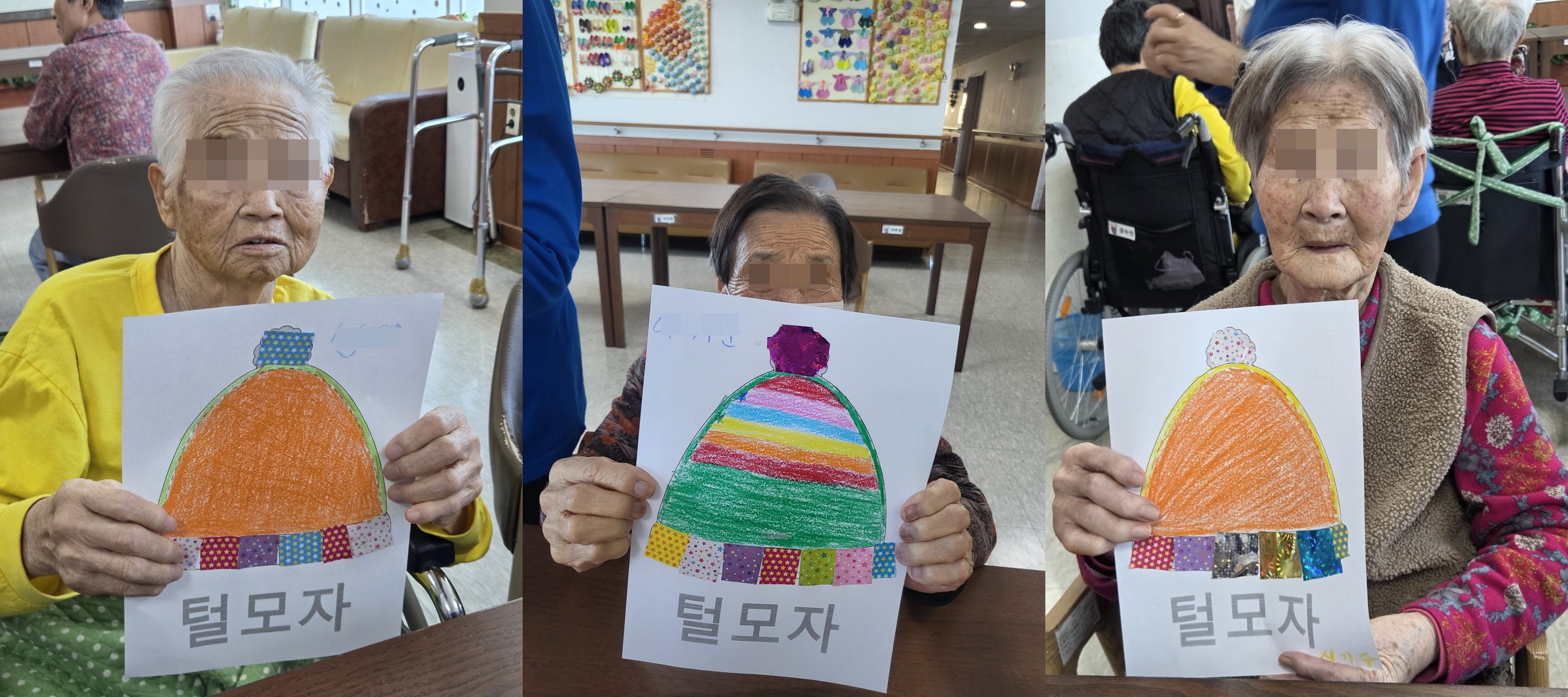 어르신들과 예쁜 털모자색을 입혀보았습니다~^^