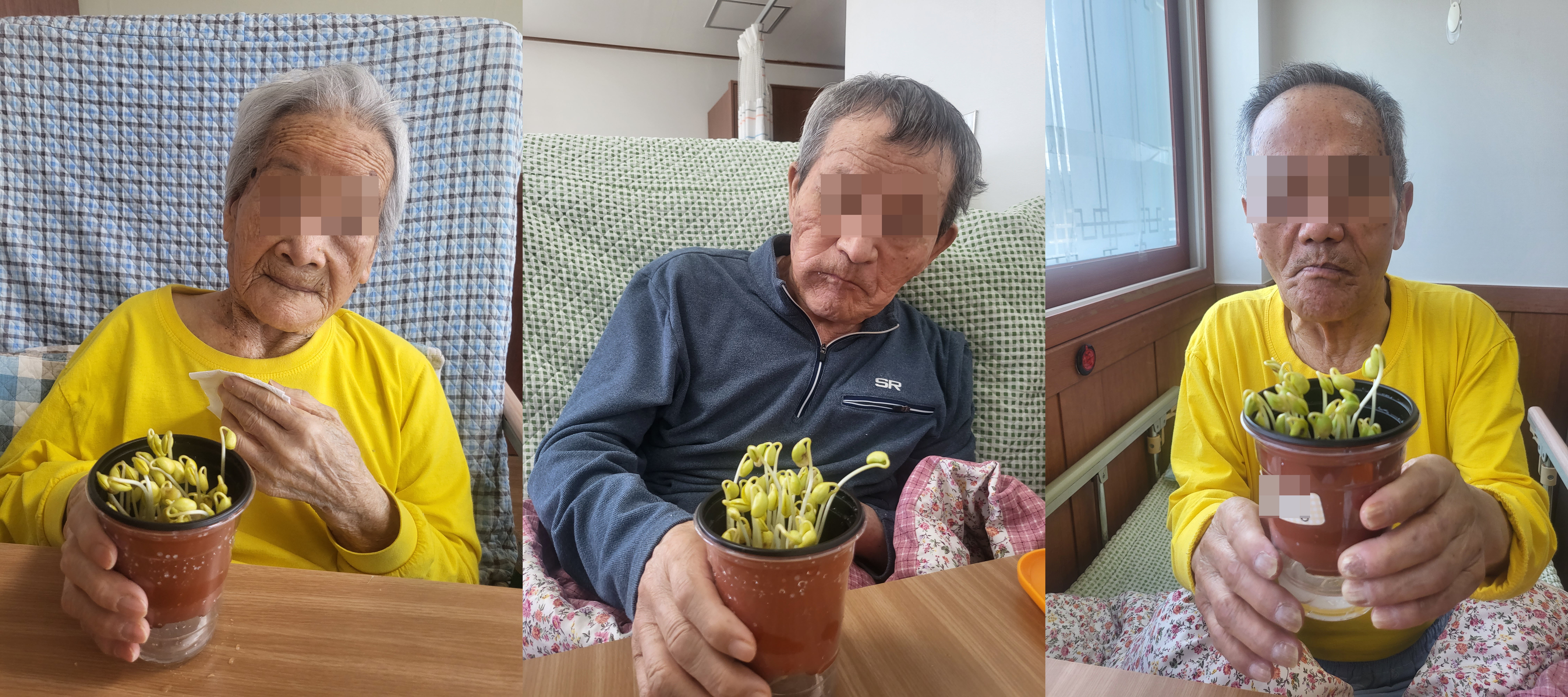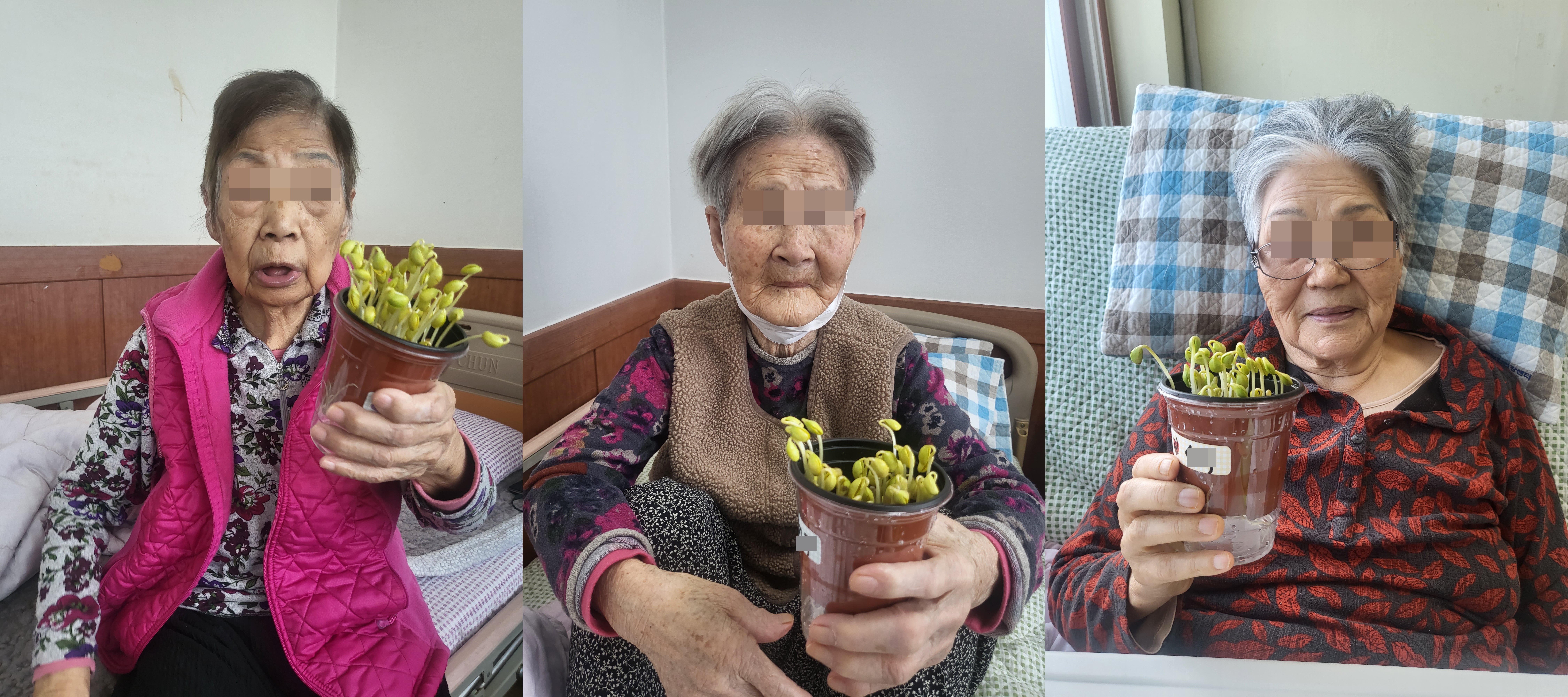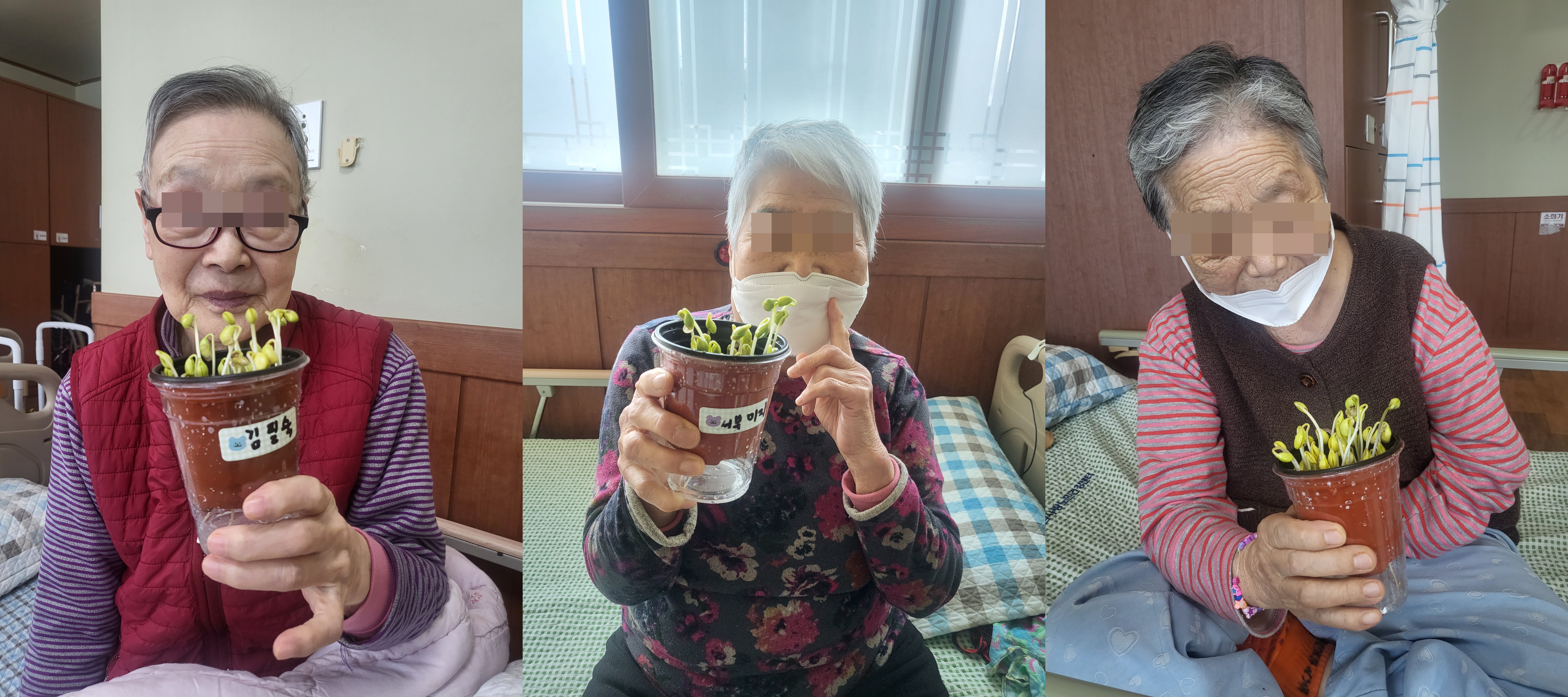 어르신께서 신기해 하시며 직접 키우신 콩나물을 보며 흐뭇하며 즐거워하셨습니다.. (๑•᎑<๑)ー☆