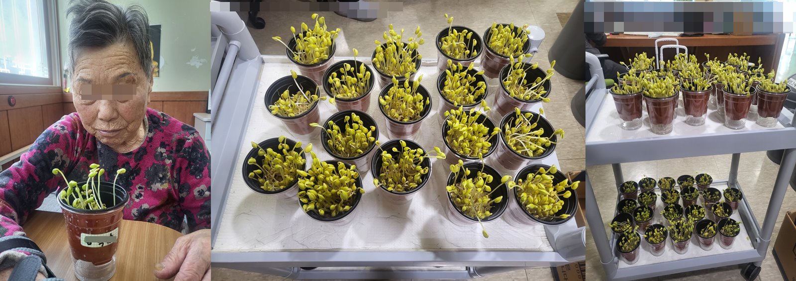 오늘은 어르신들과 일주일간 키운 콩나물를 수확 하려고 합니다. ~★