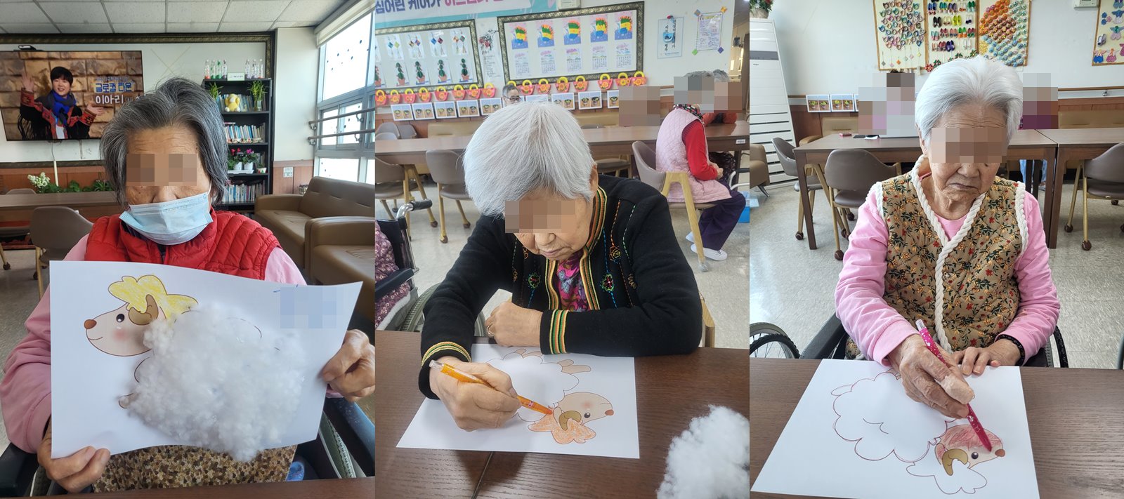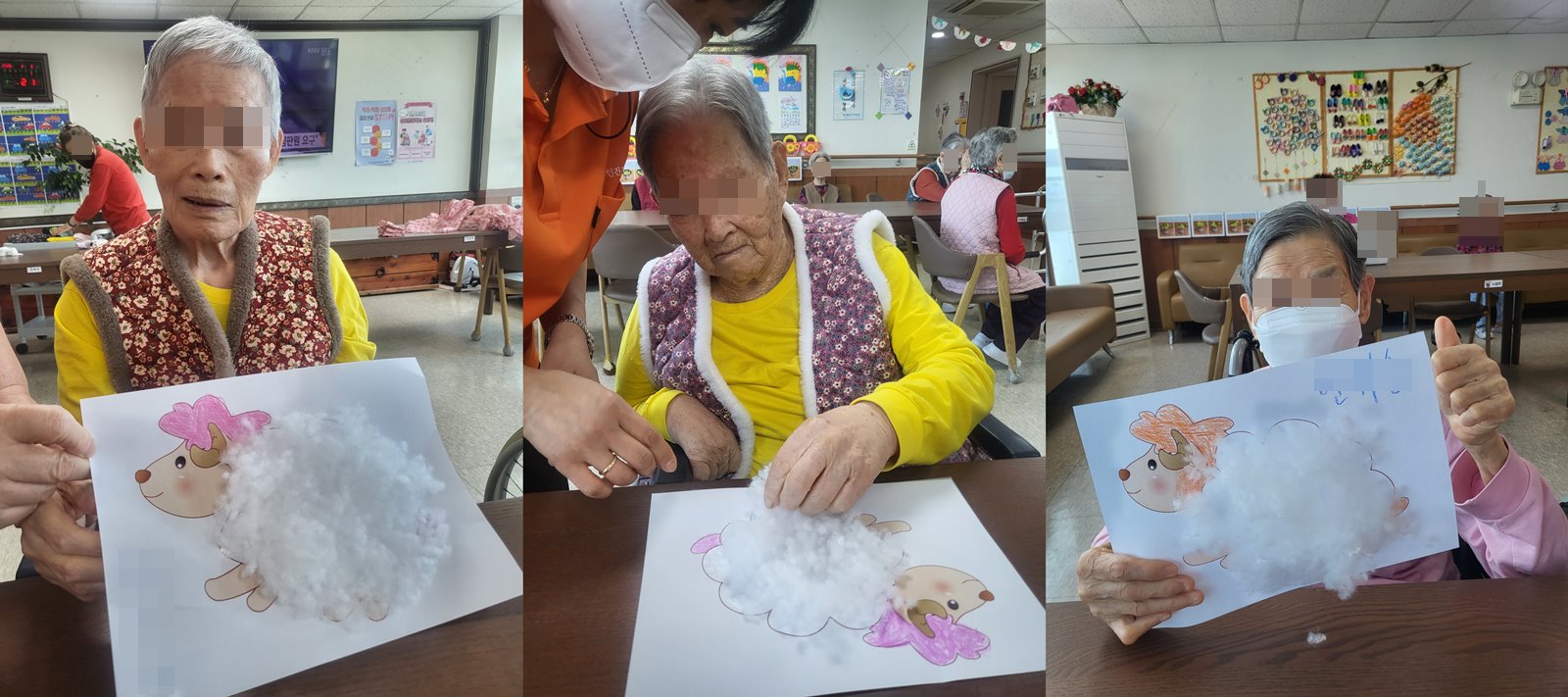 어르신들께서 양을 상상하고 완성하며 예쁘게 사진도 찍어보셨답니다.
