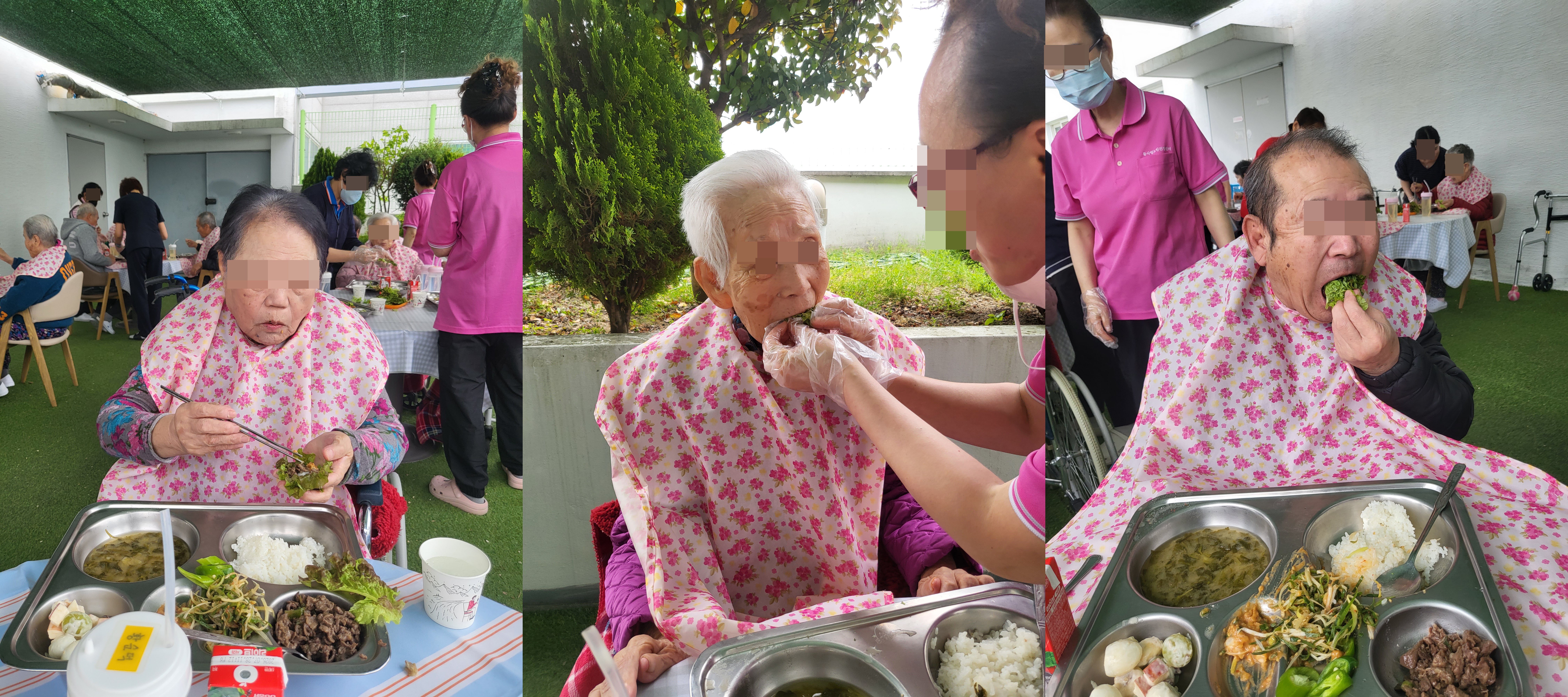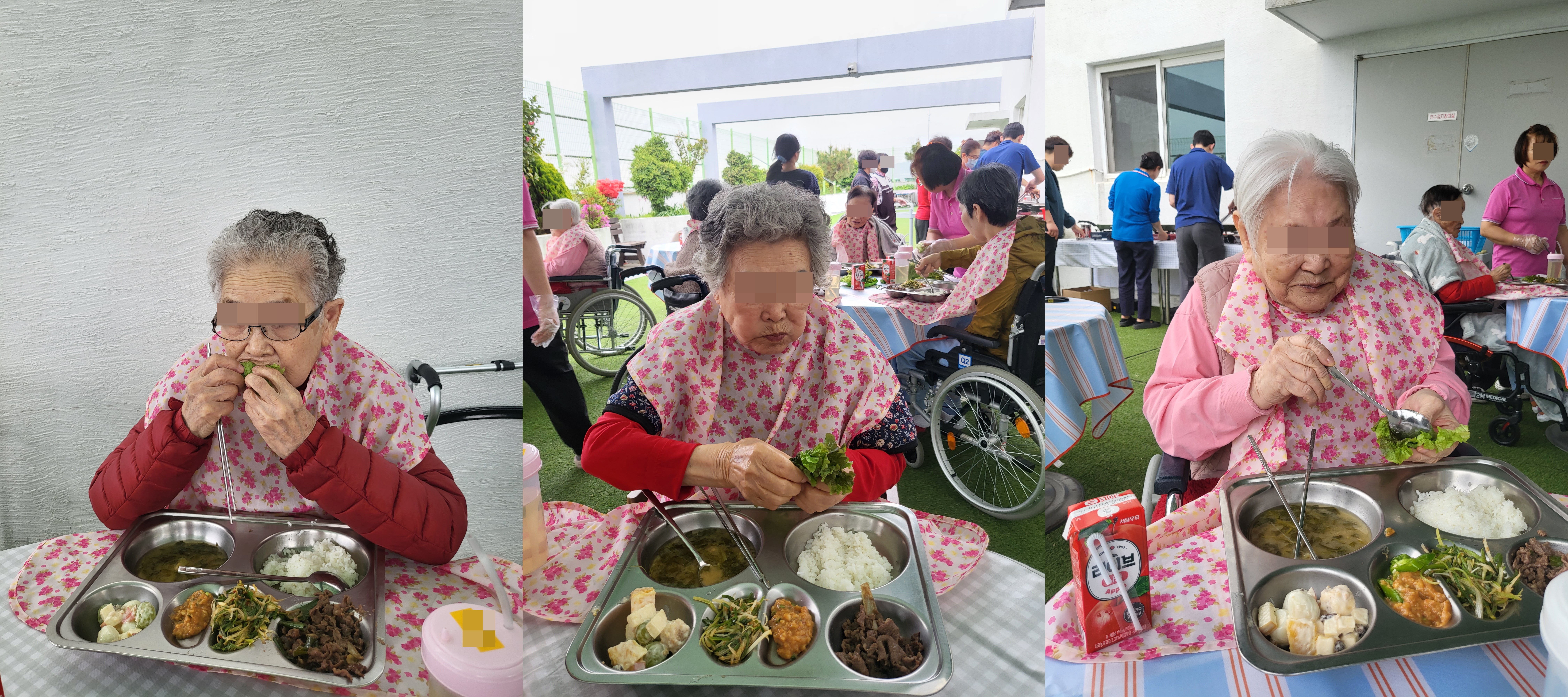 어르신들께서 정말 만족스럽게 식사를 하신 후 어르신들께서