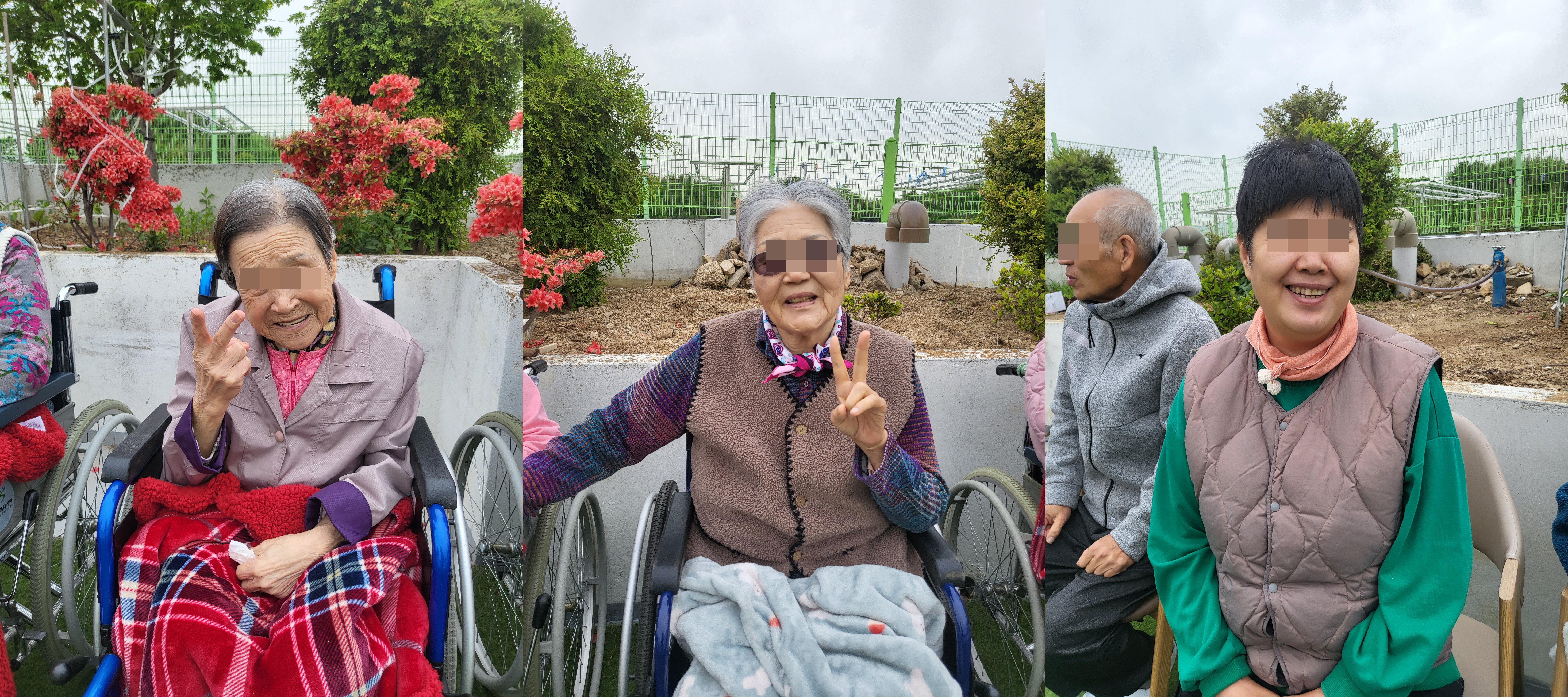 따뜻한 4월 햇살 봄바람을 맞으며 건물 옥상에서 어르신들과 함께